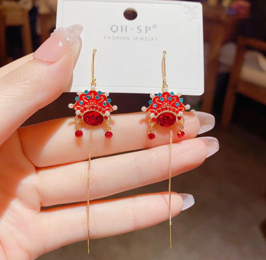 Beijing opera face tassel earrings zirconium alloy earrings suitable for dating shopping and celebrating holidays