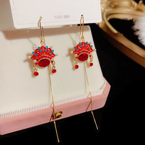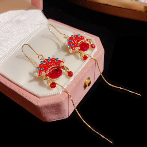 Beijing opera face tassel earrings zirconium alloy earrings suitable for dating shopping and celebrating holidays