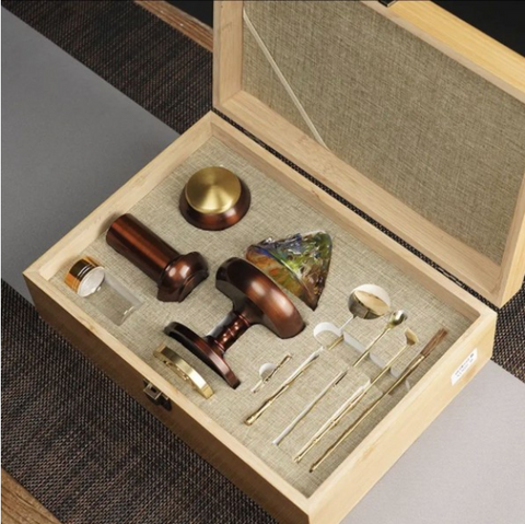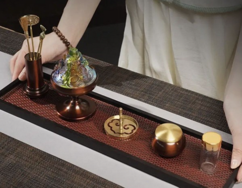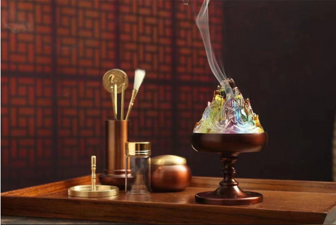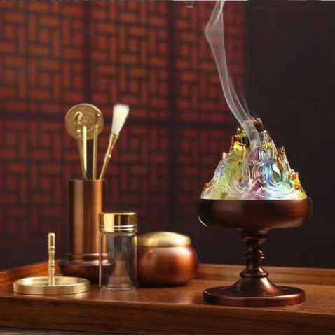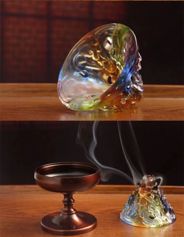 Colored Glass Pure Copper Magic Incense Burner/Pure Copper 9-Piece Set