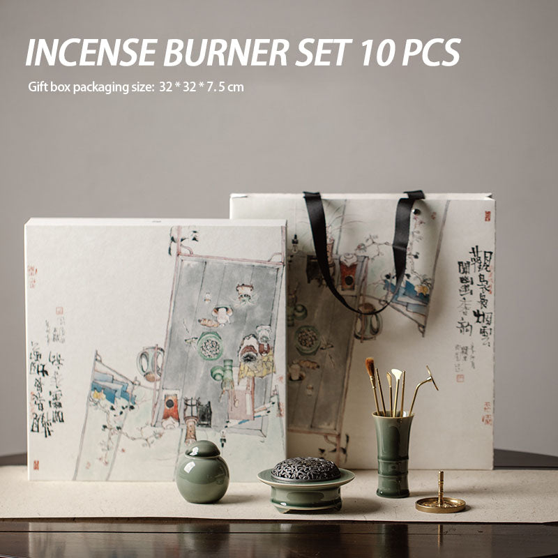 Celadon Incense Burner Set 10pcs Chinese Style Incense Road Gift Box